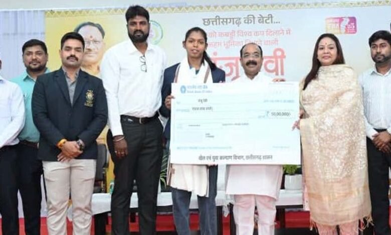 उप मुख्यमंत्री अरुण साव ने सौंपा चेक, राज्य में पहली बार किसी खिलाड़ी को दी गई है इतनी बड़ी प्रोत्साहन राशि