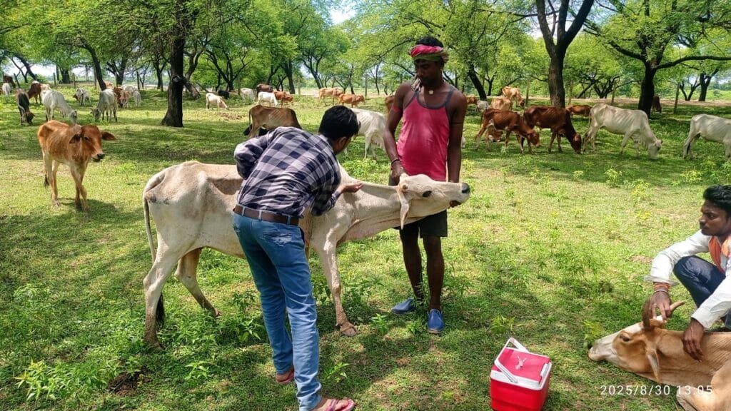 पशु चिकित्सा विभाग द्वारा पशु चिकित्सा शिविर का आयोजन कर पशुधन को लम्फी बीमारी से बचाव हेतु टीकाकरण किया गया। शिविर में पशुओं का स्वास्थ्य परीक्षण किया गया और एवं 120 लम्फी बीमारी से बचाव हेतु टीकाकरण किया गया। इसके साथ ही 30 पशुओं को कृमिनाशक दवापान, एक पशु में कृत्रिम गर्भाधान तथा 11 पशुओं हेतु औषधि वितरण किया गया।